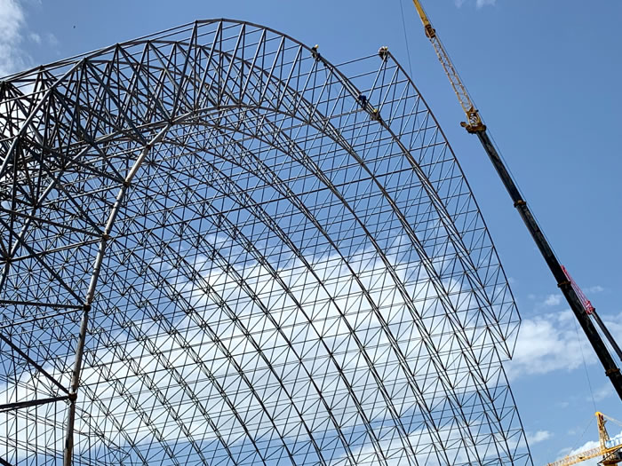 (2)网架加工前应对现场尺寸进行复测,确认无误后方可进行加工、安装;网架制作、运输、安装应遵守《空间网格结构技术规程》JGJ7-2010、《钢网架新沂螺栓球节点》JG/T 10-2009、《钢网架新沂螺栓球节点用高强度螺栓》 GB/T 16939-2016、《新沂钢结构新沂工程新沂施工规范》 GB50755-2012、《新沂钢结构新沂工程新沂施工质量验收标准》 GB50205-2020。